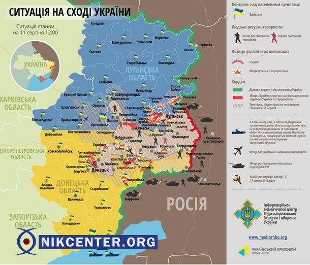 Актуальная карта боевых действий в зоне АТО за 11 августа – СНБО