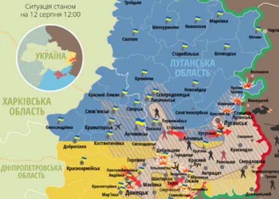 Актуальная карта боевых действий в зоне АТО по состоянию на 12 августа