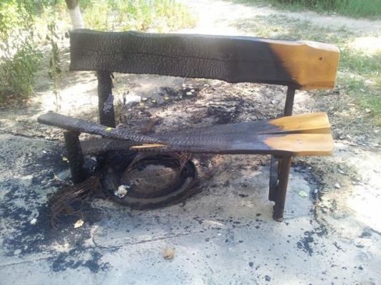 Лавочки для инвалидов в Херсоне жгут с помощью шин