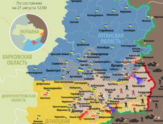 Актуальная карта боевых действий в зоне АТО по состоянию на 21 августа