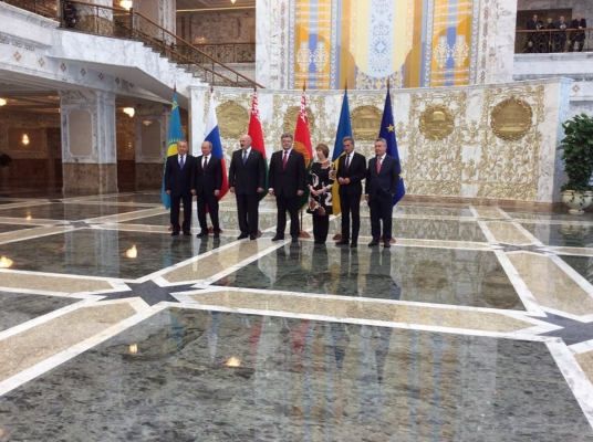 В эти минуты в белорусском Минске уже происходит встреча президента Украины Петра Порошенко с лидерами Евразийской тройки — России, Беларуси, Казахстана, а также лидерами Евросоюза.