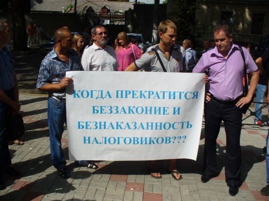 Митингующие вышли с плакатами: «Нет — давлению на бизнес!», «Где обещанная люстрация?», «Когда прекратится беззаконие и безнаказанность налоговиков?».
