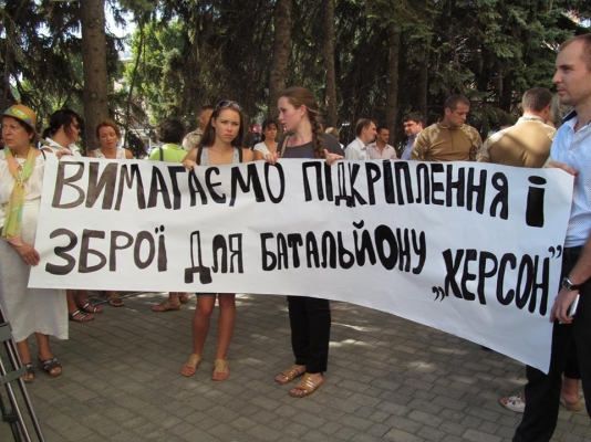 Вчера родственники бойцов Нацгвардии и батальона специального назначения «Херсон» собрались на митинг и требовали от Президента немедленного подкрепления для бойцов в зону АТО и вывода ребят из под-обстрела. Напомним, что остаётся неизвестная судьба 60 бойцов Нацгвардии Херсона, которые пропали по дороге Амбросиевка-Мариуполь. Экс-губернатор Юрий Одарченко сегодня находится в Киеве для выяснения в Министерстве внутренних дел подробностей о пропавших солдат. А также кто отдавал приказ командиру батальона «Херсон» Руслану Старчеусу ехать в Иловайск под огонь российской армии. Юрий Одарченко в своём сообщение на фейсбуке отмечает: « Я хочу з’ясувати, яким чином могло статися так, що батальйон патрульної служби "Херсон" поїхав до Маріуполя на патрулювання, а за кілька днів його бійці почали гинути під Іловайськом під вогнем армії РФ. Ми всі маємо право знати, хто конкретно віддав наказ Старчеусу та його людям їхати в найгарячішу точку фронту. І чому це було зроблено. Якщо це було незаконно — має бути конкретна відповідальність».