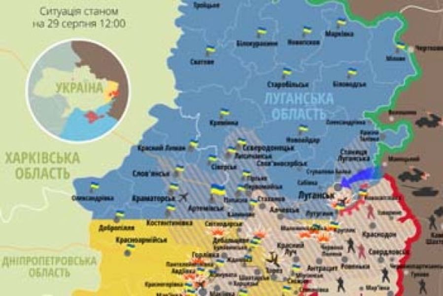 Актуальная карта боевых действий в зоне АТО по состоянию на 29 августа