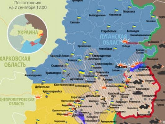 Актуальная карта боевых действий в зоне АТО по состоянию на 2 сентября