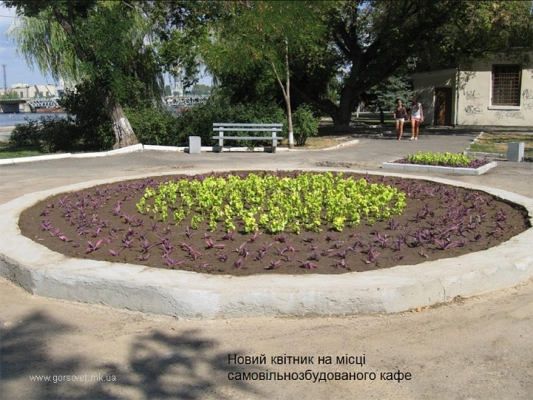 В июне администрация Центрального района снесла незаконно построенное здание летнего кафе на нижней набережной бульвара, а специалисты ООО «Николаевзеленхоз» обусроили ко Дню независимости новый цветник, который прибавит ярких красок месту отдыха горожан. К 1 сентября отремонтирован бордюр цветника в сквере им. Гмырева. Весной на нем будут высажены новые растения и еще один сквер станет ярче.