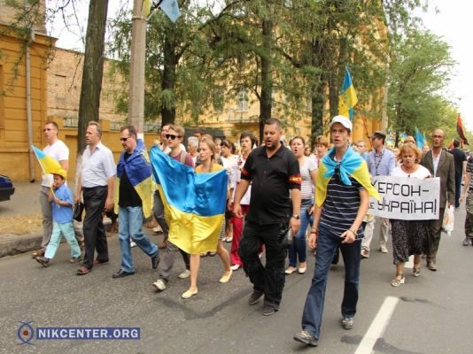 На площади Свободы люди молились за мир, а затем вышли на главный проспект Херсона. К Вечному огню патриотов сопровождала колонна автомобилей с жёлто-голубыми стягами. Гимн Украины раздавался на протяжении всего шествия. К марширующим горожанам постепенно присоединялись неравнодушные прохожие. А в Парке Славы во время молебна, люди почтили память погибших воинов в зоне АТО.