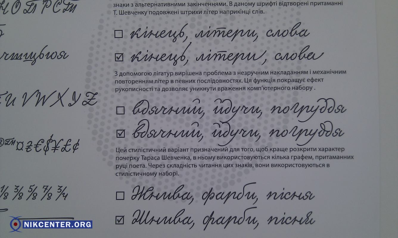 К 200-летию со дня рождения Тараса Шевченко в Украине создали уникальный шрифт, который полностью воспроизводит почерк знаменитого писателя и художника. Разработали шрифт, который называется Kobzar KS, украинские графические дизайнеры Дмитрий Растворцев, Лукьян Турецкий и Геннадий Заречнюк, а инициатором инновации стал мобильный оператор “Киевстар”, пишет Сегодня.