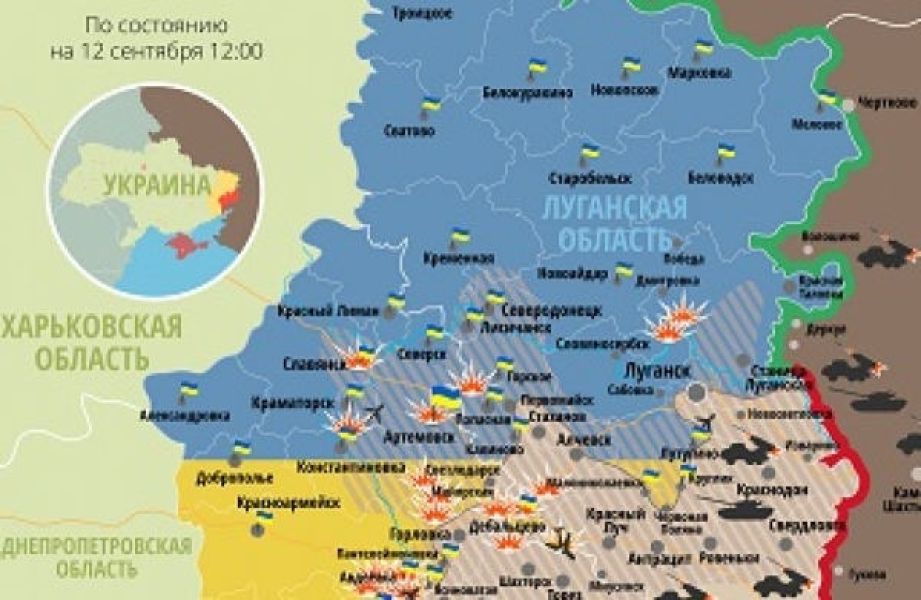 Актуальная карта боевых действий в зоне АТО по состоянию на 12 сентября