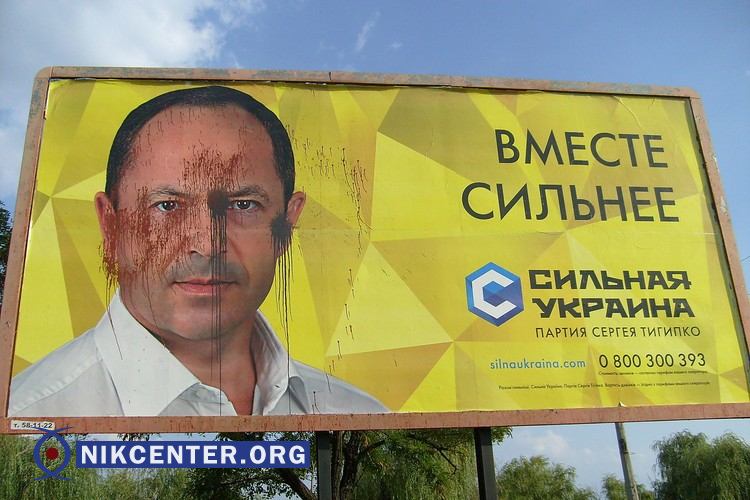 В Варваровке запятнали краской Тигипко на биллборде партии «Сильная Украина»
