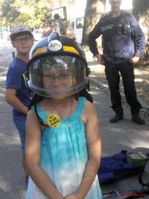 Юные одесситы также имели возможность не только увидеть технику и оборудование, которыми пользуются пожарные, спасатели, авторемонтники и др., а также — примерить униформу, обмундирование и получить некоторые практические навыки, связанные с этими профессиями.