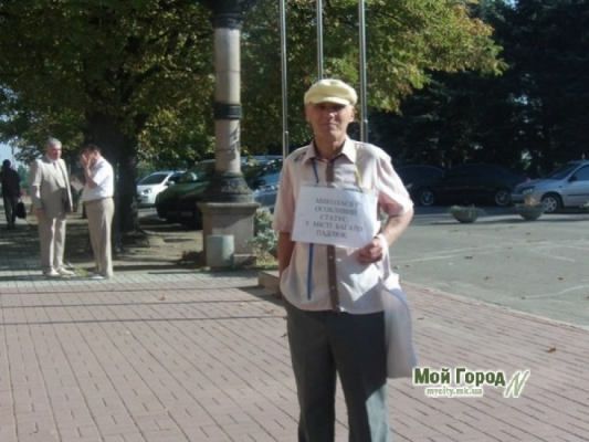 Сегодня, 16 сентября, депутаты Николаевского горсовета продолжат сессию, прерванную в прошлый четверг. Пока все собирались в сессионном зале, скандально известный монопикетчик Анатолий Ильченко снова успел отметиться. Под здание мэрии он пришел с небольшим плакатом и заявил, что хочет, чтобы его услышали во всей Украине, сообщает «Мой город».