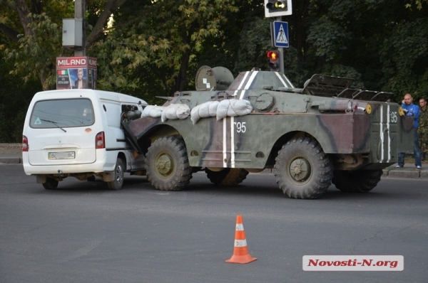 БРДМ ехал в составе армейской колонны, которая двигалась по ПГС в сторону Ингульского моста. Микроавтобус выезжал со стороны «магеллановской» парковки на проспект по ходу движения колонны. На проспекте транспортные средства и столкнулись.