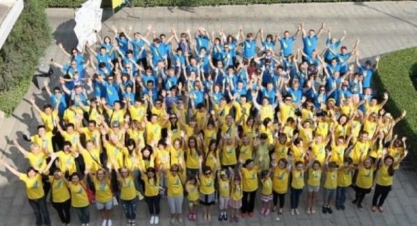 Более трех сотен участников акции одели желтые и голубые футболки и создали таким образом национальный флаг Украины. Во время акции также можно было купить себе футболку в цветах украинского флага.