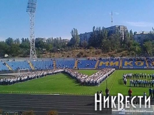 Сегодня на центральном городском стадионе Николаева по случаю 77-летия образования Николаевской области 1200 горожан «построили» букву N. Так своеобразно они поздравили николаевцев, а заодно побили рекорд «Книги Гиннесса», сообщают НикВести.