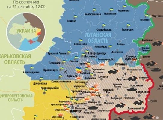 Актуальная карта боевых действий в зоне АТО по состоянию на 21 сентября