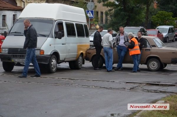 Сегодня утром в центре Николаева на пересечении улиц Чкалова и 3-й Слободской столкнулись два автомобиля: микроавтобус «Газель» и «Жигули».