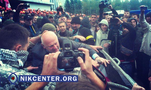 Сегодня перед началом заседания облсовета под его стенами собралась толпа из нескольких сотен активистов, которые пригрозили выбрасыванием в помойку депутатов, связанных с "Партией регионов".