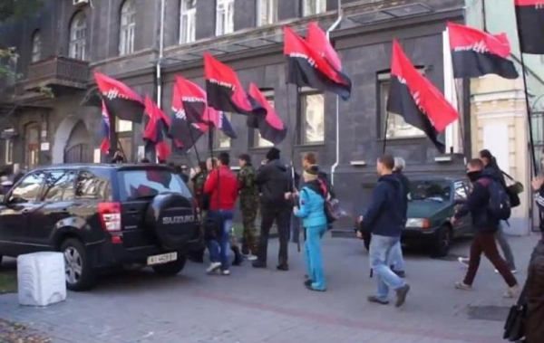 По всей видимости, акция проходит в знак протеста против отказа Центризбиркома регистрировать кандидатов от Правого сектора с непогашенной судимостью.