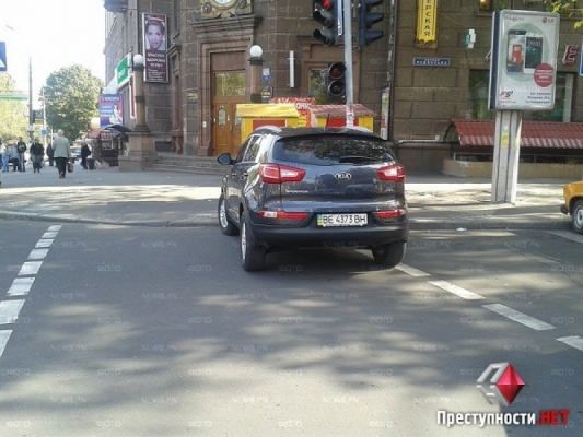 В Николаеве 2 октября водитель кроссовера «KIA Sportage» решил оставить свой автомобиль прямо на пешеходном переходе по улице Советская.