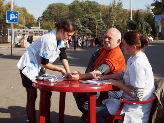 В течение двух дней студенты старших курсов Одесского областного базового медицинского училища при участии врачей городского Центра здоровья измеряли всем желающим артериальное давление в оживленных точках города – на железнодорожном вокзале, на автостанции «Привоз» и Центральном автовокзале, улице Дерибасовской, Соборной площади и в Преображенском парке.