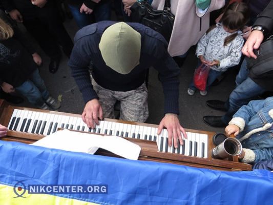 4 октября в Николаеве более двухсот человек пришли на площадь Ленина, чтобы послушать музыку пианиста, поднимавшего боевой дух защитников Майдана и ставшего там известным.