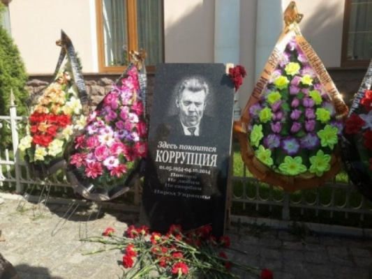 Вместе с тем они установили гранитную плиту с надписью: "Здесь покоится коррупция. Помним. Не любим. Не скучаем". По окончанию акции плиту убрали.