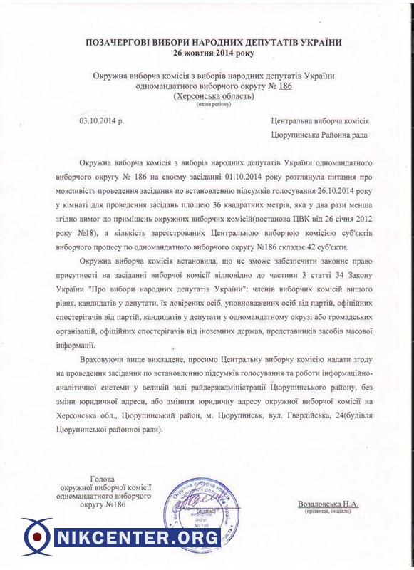 Про обоснованные риски срыва работы окружной комиссии в день голосования, итогах предварительного общения председателя комиссии с руководителями Цюрупинской РГА и Цюрупинского районного совета, предпринятых действиях, смотрите в полной версии видео интервью, которое председатель ОИК 186 Наталья Возаловская дала для Херсонской областной организации Комитета Избирателей Украины.
