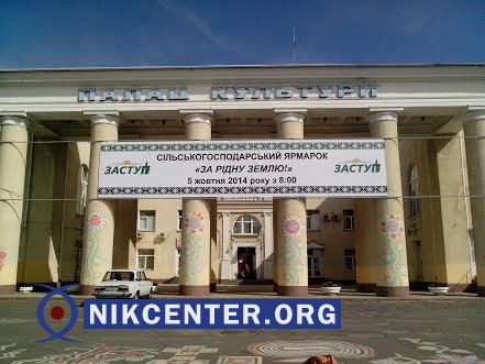 В Николаеве партия «Заступ» вывесила агитационный баннер на городской дворец культуры коммунальной формы собственности и, 5 октября, провела сельскохозяйственную ярмарку с агитацией. Об этом сообщили в пресс-службе Гражданской сети «Опора».