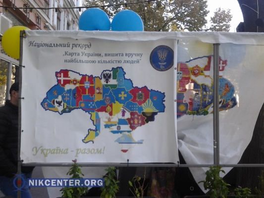 Сегодня, 9 октября, в Одессе завершилась уникальная всеукраинская акция "Україна — разом!". На протяжении двух дней любой одессит или гость города мог присоединиться к вышиванию большой карты Украины.