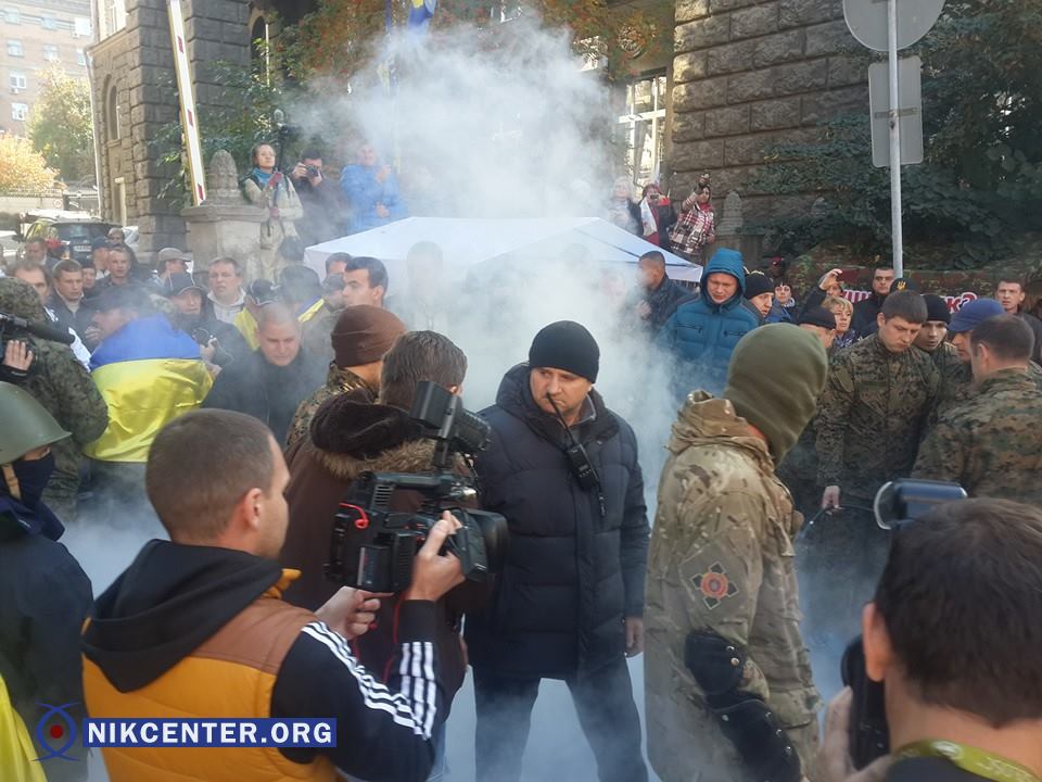 Когда митингующие пытались прорваться к самому зданию Администрации им на пути встала милиция и батальоны "Киев-1". Завязалась потасовка.
