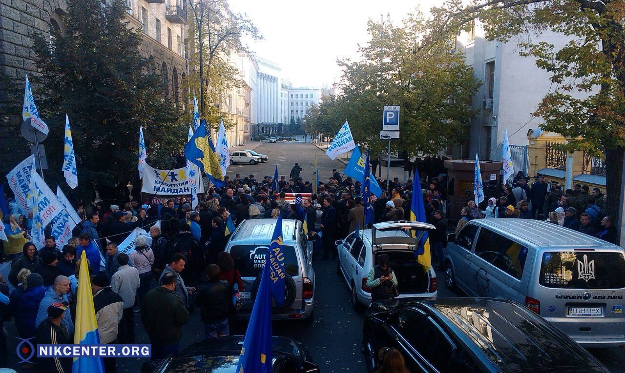 "Митингующие возмущены тем, что избиение регионала Шуфрича в Одессе вызвало быструю и жесткую реакцию властей", — рассказывает активист Виталий Уманец в Facebook.
