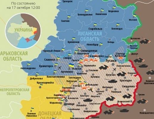 За сутки в результате обстрелов погибло трое украинских военных. Карта боевых действий в зоне АТО на 17 октября