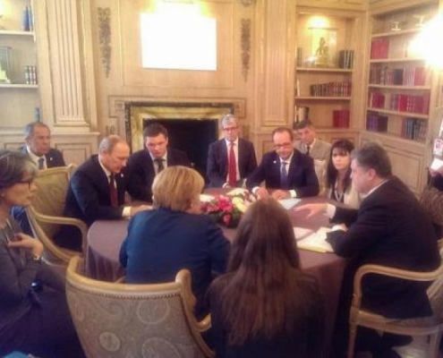 Сегодня утром проходила более широкая встреча — при участии Порошенко, Путина, Меркель, Олланда, премьера Великобритании Дэвида Кэмерона, руководителей Еврокомиссии Жозе Мануэла Баррозу и Германа ван Ромпея, главы дипломатии ЕС Федерики Могерини.