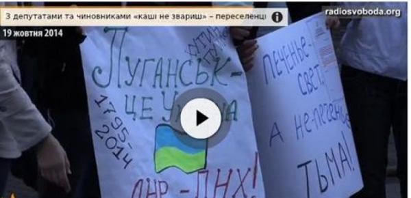 Возле здания Кабинета министров Украины в Киеве, в воскресенье, 19 октября, активисты и вынужденные переселенцы провели акцию под девизом «Депутаты и чиновники, с вами каши не сваришь!».