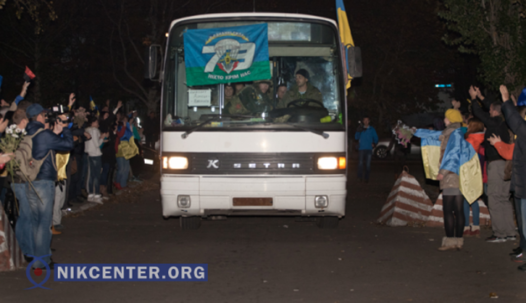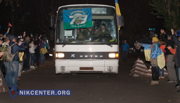 После в часть приехали два автобуса с бойцами 79-й аэромобильной бригады. Николаевцы встречали их аплодисментами и криками «Герои!». Сдав оружие, бойцы выходили к людям, где их встречали родные и близкие, а горожане их благодарили.