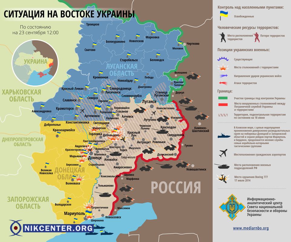 За прошедшие сутки активность террористов в отдельных районах зоны АТО по сравнению с концом прошлой недели несколько возросла. На подконтрольных боевикам территориях продолжается фиксация наращивание сил незаконных вооруженных формирований и подразделений ВС РФ. Об этом сообщил сегодня на брифинге спикер ИАЦ СНБО Андрей Лысенко.