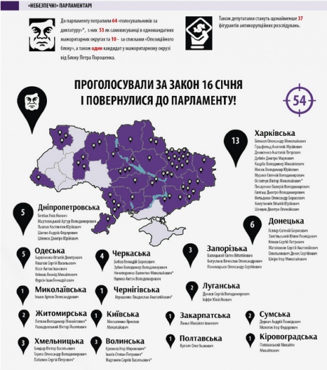 При этом в Верховную Раду VIII созыва попадают 64 народных депутата, голосовавших за закон 16 января, а также по крайней мере 37 фигурантов журналистских антикоррупционных расследований.
