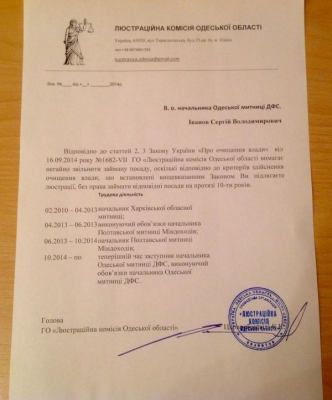 Люстрационная комиссия Одесской области официально направила письмо в Государственную фискальную службу с требованием уволить начальника региональной таможни Сергея Иванова. Как рассказал Репортеру сегодня, 28 ноября, представитель Люстрационного комитета Одесской области Константин Цховребашвили, основанием послужили как факты биографии чиновника, так и жалобы предпринимателей.