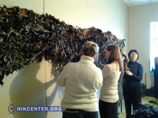 На протяжении всей осени одесситы готовят маскировочные сетки для военных. Принять участие в изготовлении может любой желающий – никаких специальных навыков для этого не надо. Всего за несколько минут новичок сможет разобраться в творческой и свободной технике и приниматься за работу.