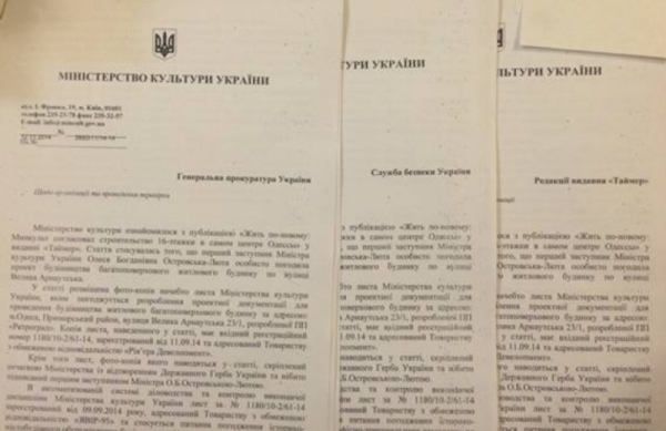Министерство культуры Украины обратилось в Генеральную прокуратуру с просьбой организовать проверку соблюдения и применения законодательства и возможной фальсификации разрешительной документации проекта строительства многоэтажного дома в центре Одессы. Соответствующая информация размещена на сайте Минкультуры.