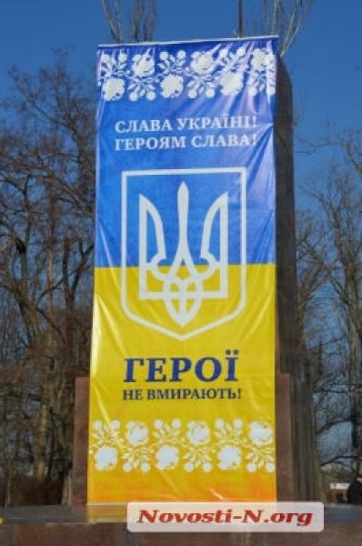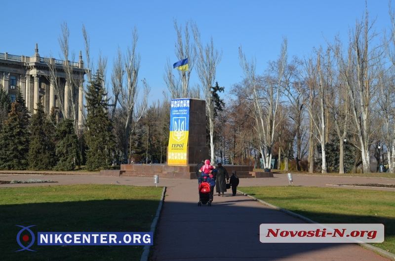 Постамент на центральной площади Николаева украсили патриотичным баннером