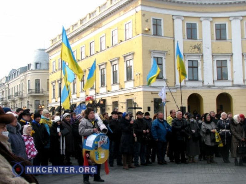 Сегодня, 23 ноября, одесситы собрались на площади возле памятника Дюку на воскресном вече – именно тут традиционно собирались активисты во время Революции достоинства.