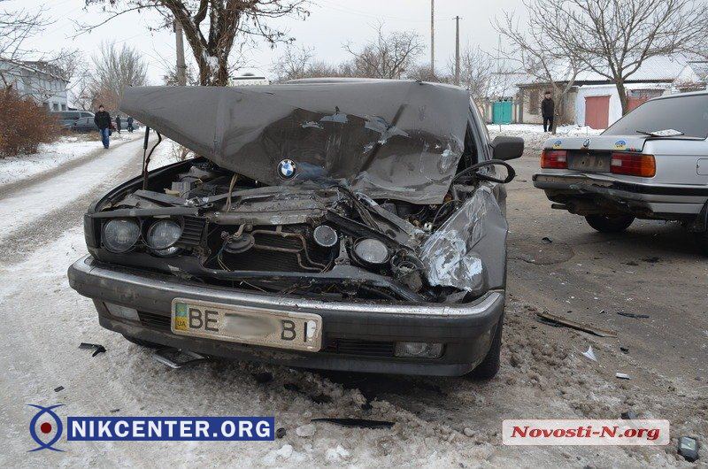 ДТП произошло в поселке Балабановка. Серый «БМВ», ехавший со стороны с. Галициново в направлении центра Корабельного района, столкнулся с двигавшимся во встречном направлении автомобилем «Хюндай». После столкновения сзади в серый «БМВ» врезался еще один «бумер», черного цвета, ехавший следом, передает интернет-издание Новости Н.