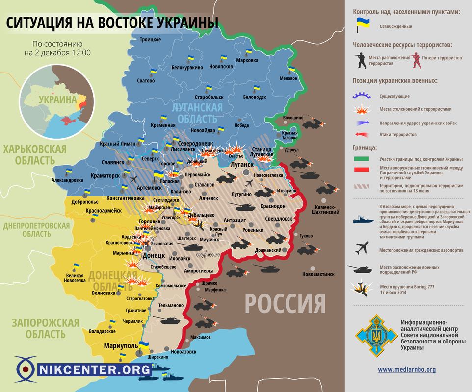 Террористы обстреляли позиции сил АТО под Славным. Карта боевых действий на 2 декабря