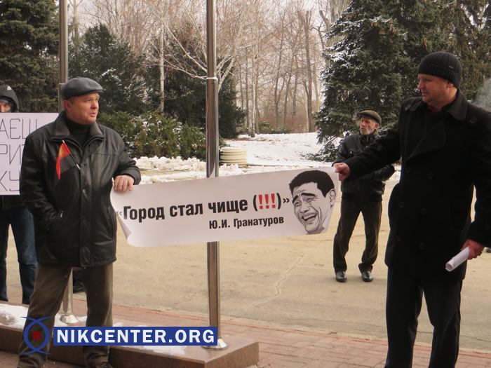 протестующим вышел городской голова Юрий Гранатуров, его заместители Юрий Андриенко, Валентин Гайдаржи, секретарь горсовета Валерий Калашников.