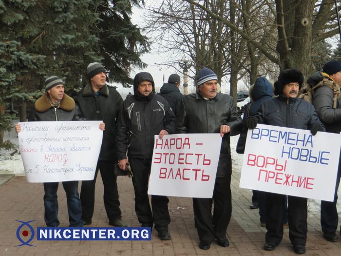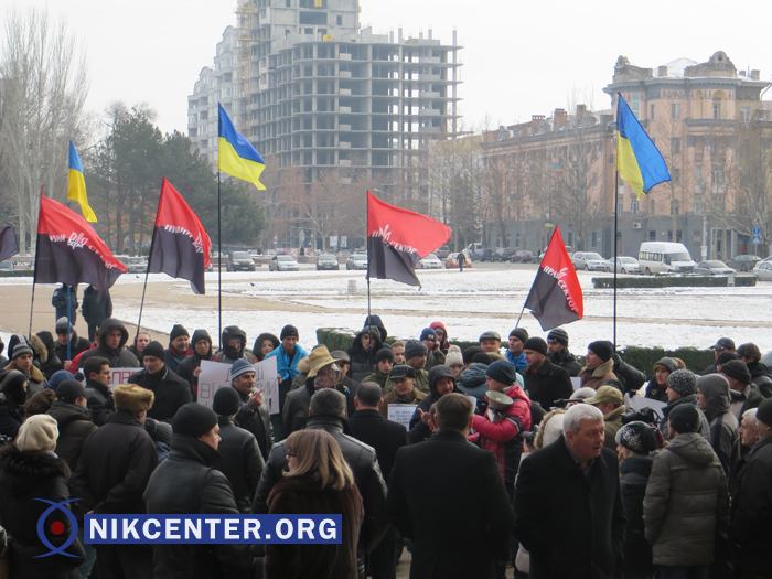 Сегодня, 4 декабря, возле Николаевского горсовета общественники под знаменами «Правого сектора» выразили свое возмущение кулуарными, по их мнению, назначениями на ключевые должности в горсовете, а также повышением тарифов на проезд в маршрутках.