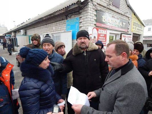 «Беззаконие, творящееся на Новокаховском Рынке (старом) не принято обсуждать вслух. Торговцы как обычно терпят, побаиваясь, что в случае чего их могут лишить места, а вместе с ним и средств к существованию. Всю подноготную решилась рассказать общественности Волкова Вита, которую недавно дирекция рынка оставила без места. Терять Вите нечего, потому она смело рассказала о притеснениях со стороны дирекции рынка. По словам Виты, плата за место на рынке составляет 1400 грн. в месяц, хотя квитанции выдают лишь на половину от этой суммы. Центральная часть рыбных ларьков установлена с нарушением пожарных норм, так как находится прямо посреди пожарного въезда на рынок. Именно в этих рядах и стоит ларёк Волковой В., который она своими силами покрасила, провела туда свет, поставила счётчик, приобрела торговый стол. Несмотря на это, месяц назад без всяких предупреждений руководством рынка был срезан замок ларька, повешен новый и сам ларёк был передан другому владельцу за 3000 долларов. Со слов Виты она арендовала ларёк, но договор аренды дирекция рынка никому не давала на руки, потому у неё нет договора аренды. Также сумма в 3000 долларов не является законной покупкой, так как не подкреплена документально, ведь сами ларьки установлены без всякой документации, так как стоят на пожарном проезде. Вите предложили купить другой ларёк, но на таких липовых основаниях она отказалась это делать», — пишет активист.