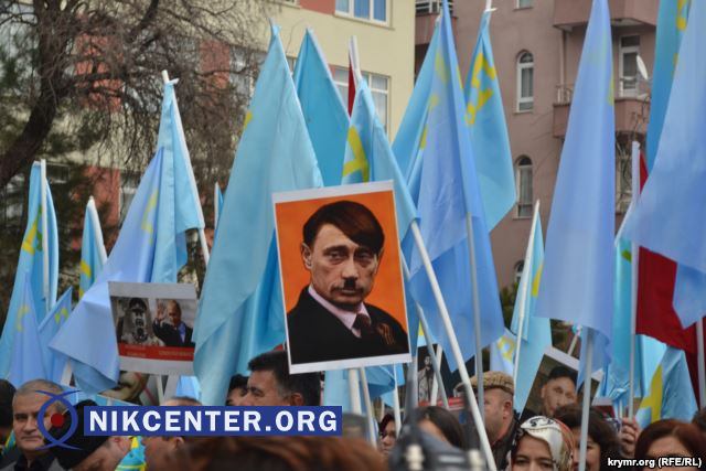 При этом участники акции скандировали "Убийца Путин, вон из Крыма", "Депортация, геноцид продолжается", "Крымские татары не сдадутся". Митингующие требовали от российских властей остановить нарушение прав человека в Крыму, давление на крымскотатарский народ и его представительный орган Меджлиса.