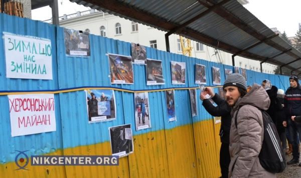 Фотовыставка «Зима що нас змінила. Херсонський Майдан» прошла в центре Херсона на площади Свободы.